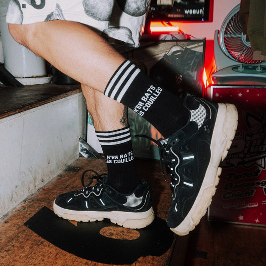M'EN BATS LES COUILLES BLACK - WHITE SOCKS