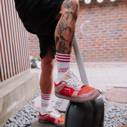 SAVE WATER DRINK BEER RED - WHITE SOCKS