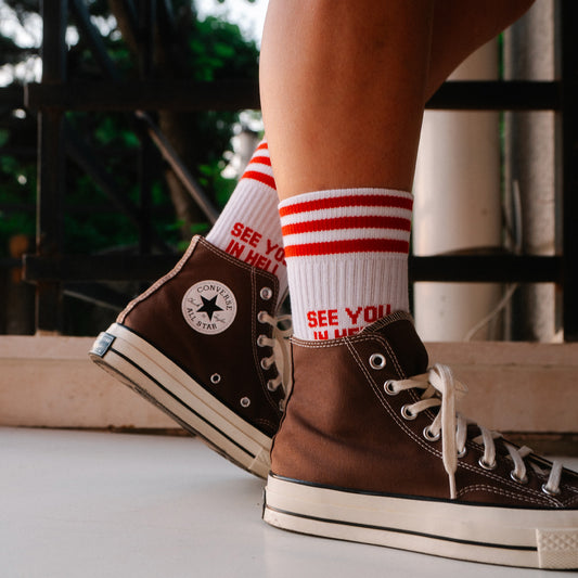 SEE YOU IN HELL RED - WHITE SOCKS