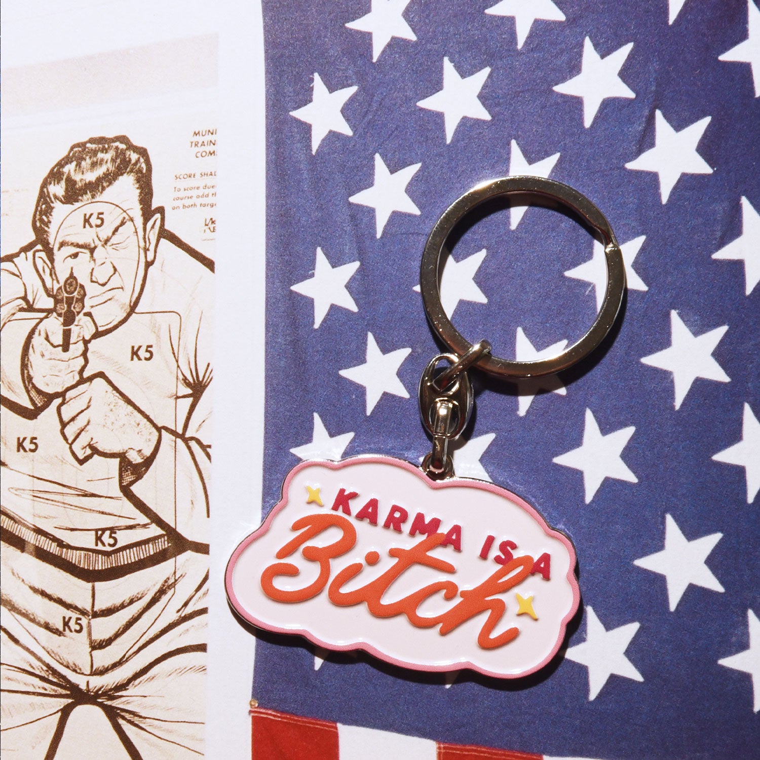 Porte-clé MOTHER SOCKER "Karma is a bitch" en métal.